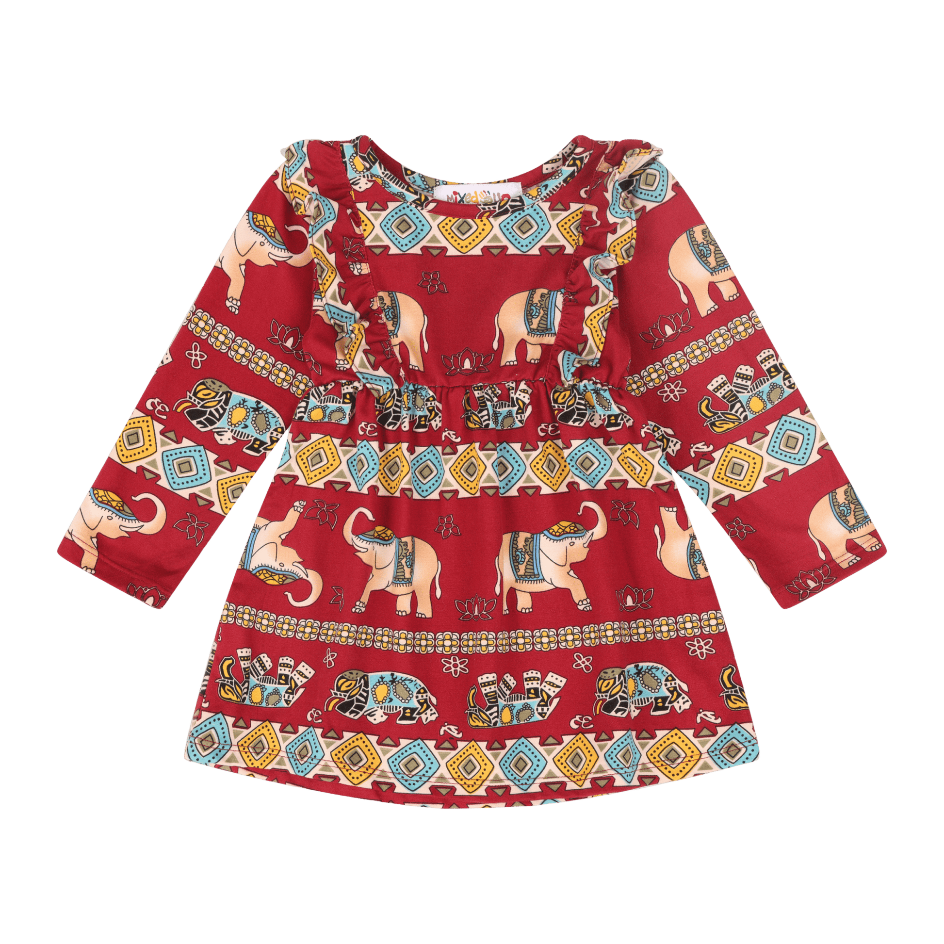 Dress your little one in cheerful comfort with our Baby Girls Volant Ruffle Cotton Dress from Mixed Up Clothing. Featuring a vibrant cultural print and playful ruffle details, this lightweight baby dress is perfect for everyday adventures, playtime, and special outings.
